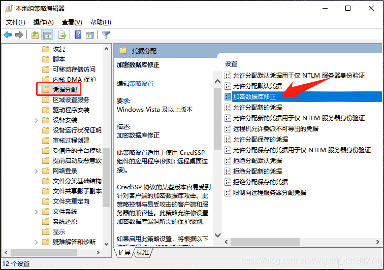 依次导航路径:计算机配置 → 管理模板 → 系统 → 凭据分配 → 加密Oracle修正;